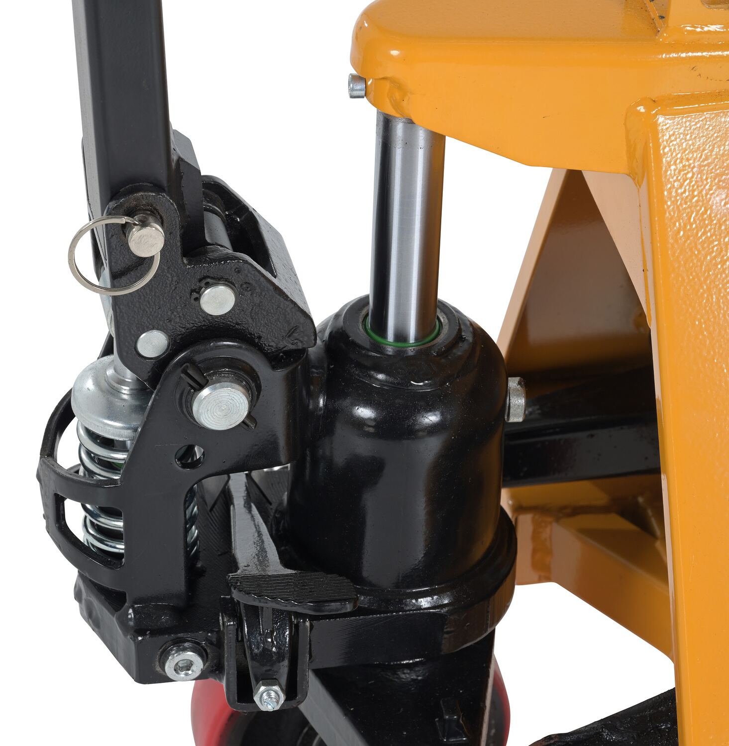 | Raised height (in.): 6 | Power/Operation: Hydraulic Hand Pump | Caster Color: Red |