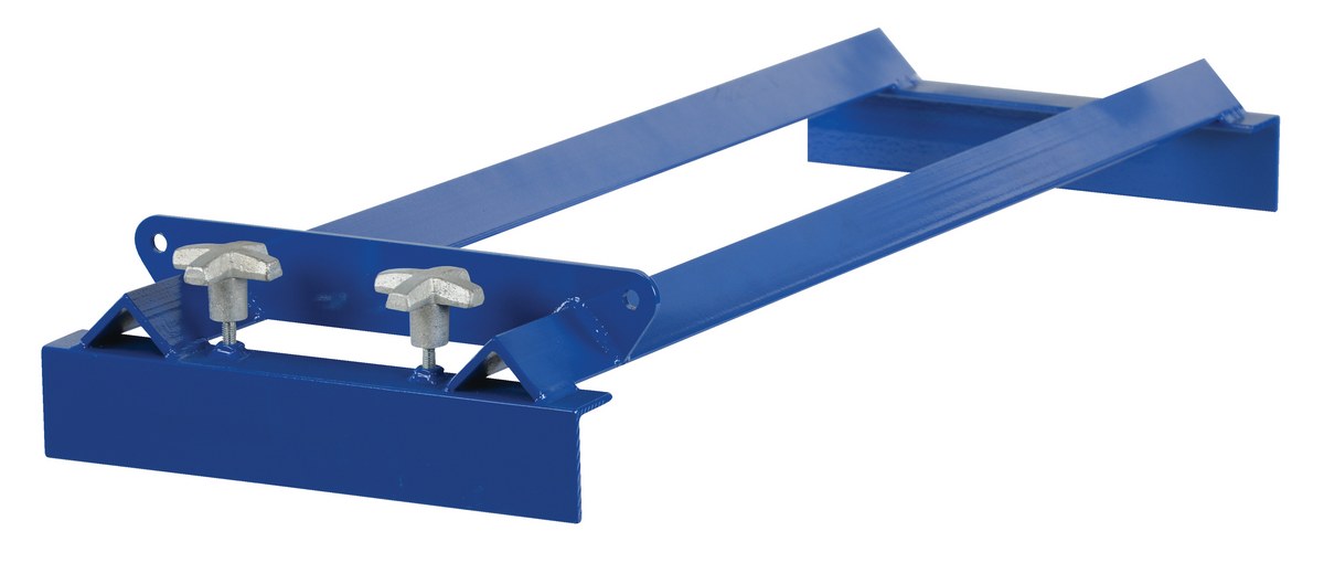 Steel Pallet Rack Drum Cradle 36-1/2 In. x 15-7/8 In. x 5-5/8 In. 800 Lb. Capacity BlueThe pallet rack drum cradle converts pallet racks into a versatile horizontal drum cradle. The unit works with either box beams and/or step beams. The drum angle is adjustable by using the height-adjustment bolts (sloping drum allows user to get 3% more fluid out).