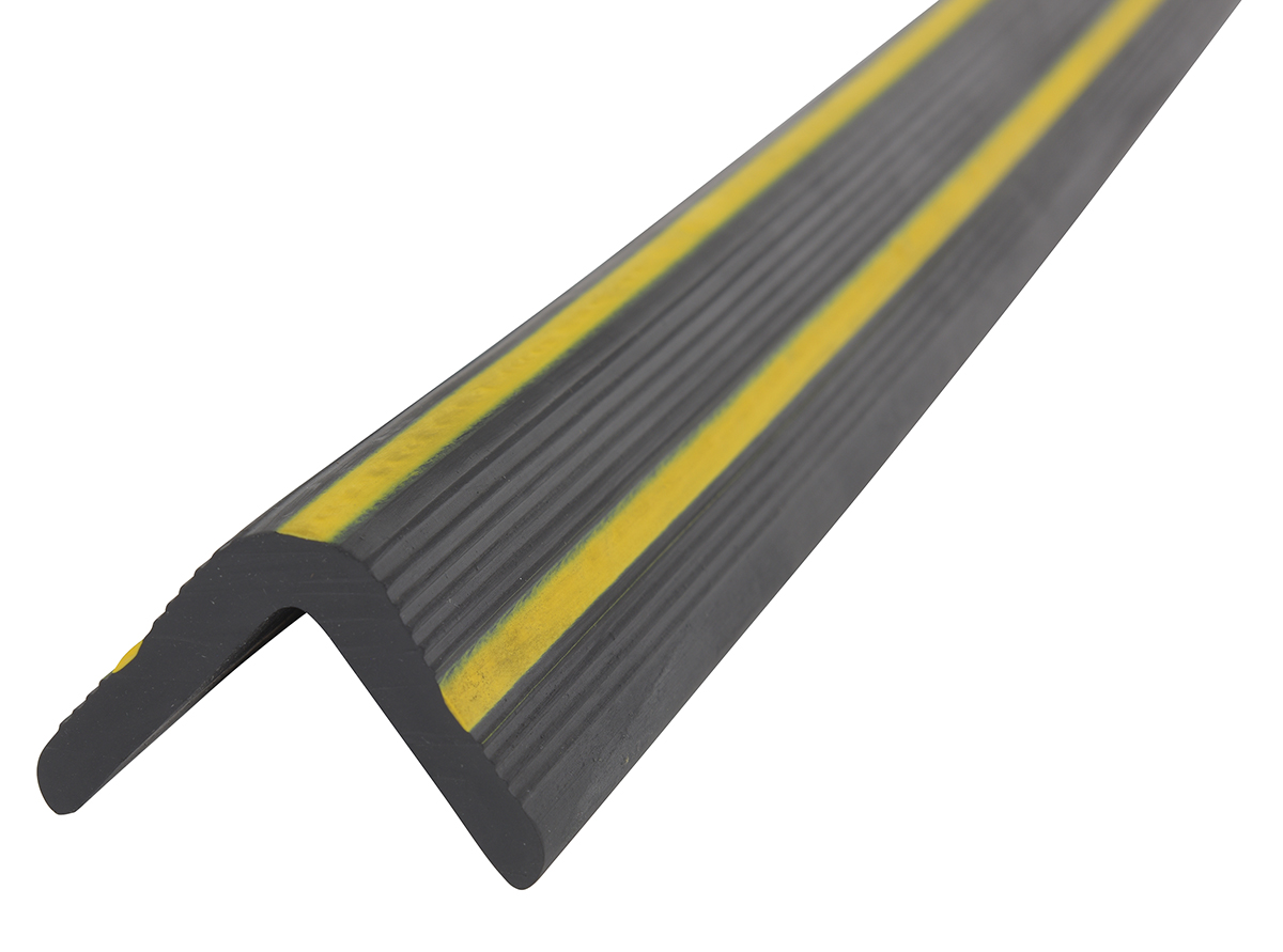 Rubber PVC Edge Guard 2 In. x 2 In. Slot Black / YellowA rubber corner guard provides corner protection without the hassle. The design is robust and fits perfectly in corners, limiting damage. A quality appearance that is suitable in a variety of areas. Simple installation with adhesive strips for immediate use.