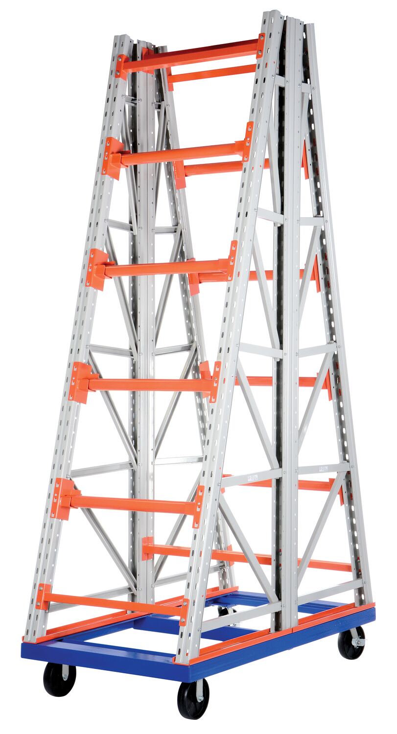 Steel Portable 2 Sided Reel Rack 72 In. x 40 In. x 120 In. 4000 Lb. Capacity White/Orange/BlueThis double sided reel rack stores and dispenses poly or wire rope, hose, electrical cable, or chain. The simple design allows you to stagger arms along the frame for different size reels. Axles are included with reel rack. This is a complete unit, no add-on sections available.