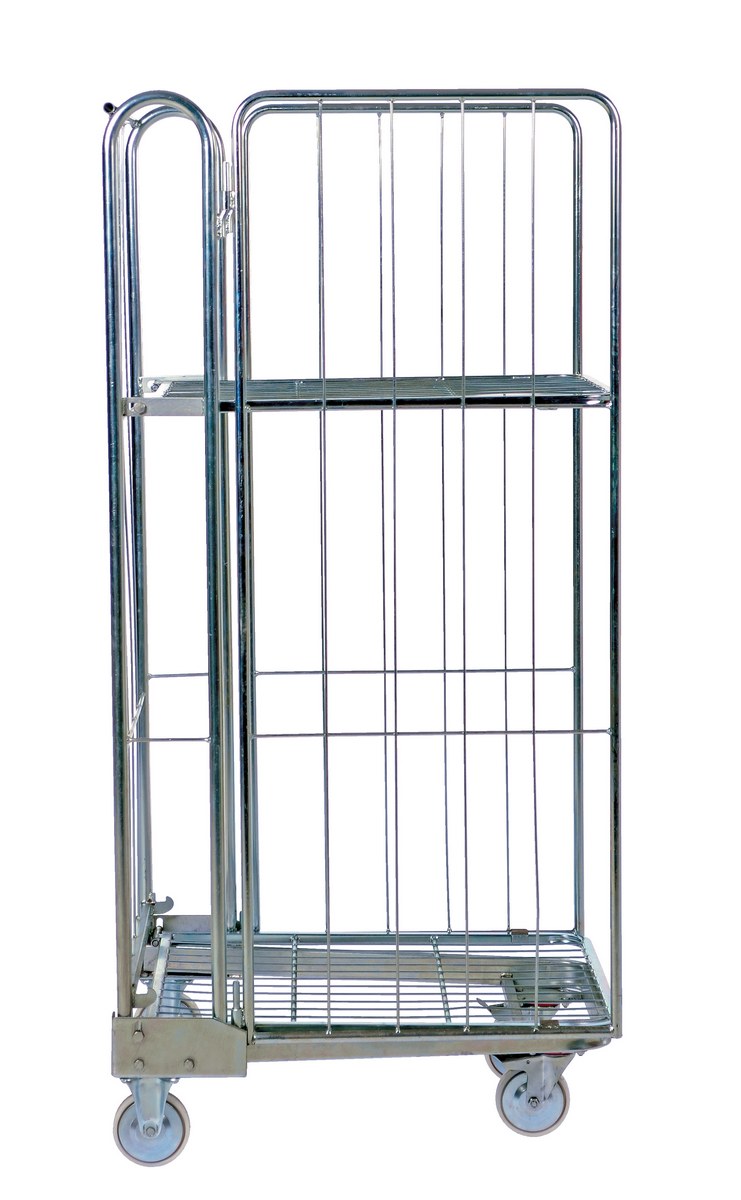 Galvanized Steel Foldable/Nestable Roller Container 2 Shelf 32 In. x 27-1/4 In. x 68-1/4 In. 660 Lb. Capacity GrayThe Foldable/Nestable roller container provides convenient portability between work cells or for delivery or distribution of goods. Unit rolls smoothly on casters. To figure individual uniform shelf capacity divide the number of shelves by total capacity.