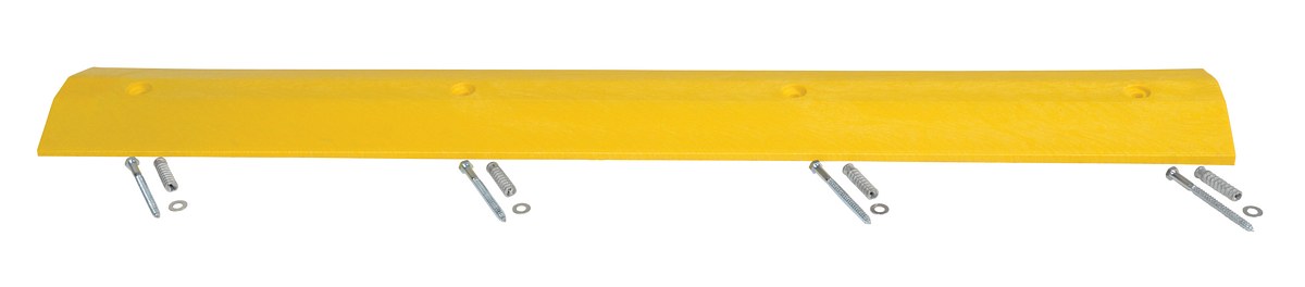 Plastic Speed Bump Concrete Hardware 72 In. x 10 In. x 2 In. YellowThe speed bump is ideal for a variety of parking areas, both inside and out. The speed bump helps to control drivers from injuring people and property. The unit can be installed/removed by one person resulting in smooth portability. The strong recycled plastic construction can be used where traffic is frequent and can hold up to the constant day to day harm from chemicals and sunlight. Features a dual cable channel. The concrete hardware kit includes bolts, anchors, and washers.