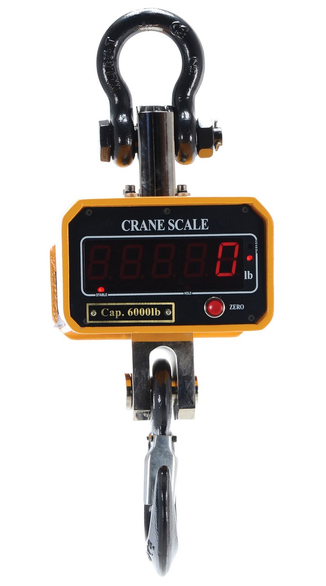 Steel Crane Scale 8 In. x 7-5/8 In. x 17 In. 6,000 Lb. Capacity YellowAccuracy, quality, durability and afford ability are key attributes of the crane scale. Our digital hanging scale offers fast and reliable weighing. Designed to withstand the most aggressive and heavy duty industrial lifting applications.