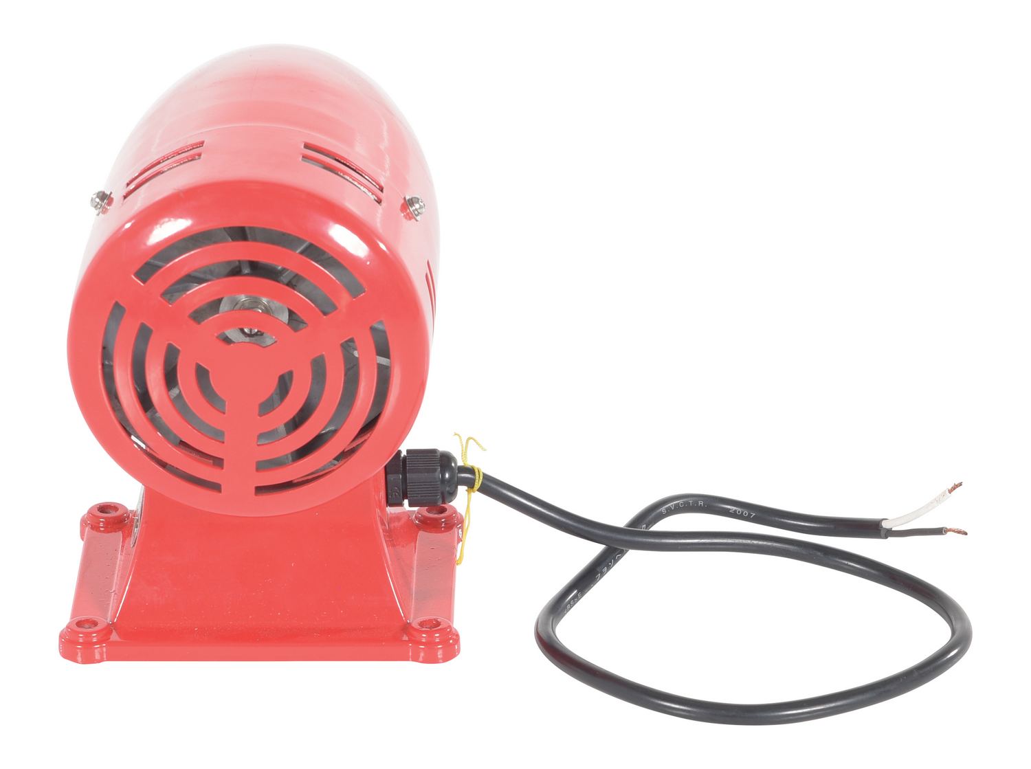 Steel Warning Siren DC Powered RedThis warning siren is an ideal method to warn people of dangerous situations including: severe weather warnings, emergency circumstances, terror situations, military alerts and correctional facility alerts. Easy to install through your local contractors or electricians. Battery not included.
