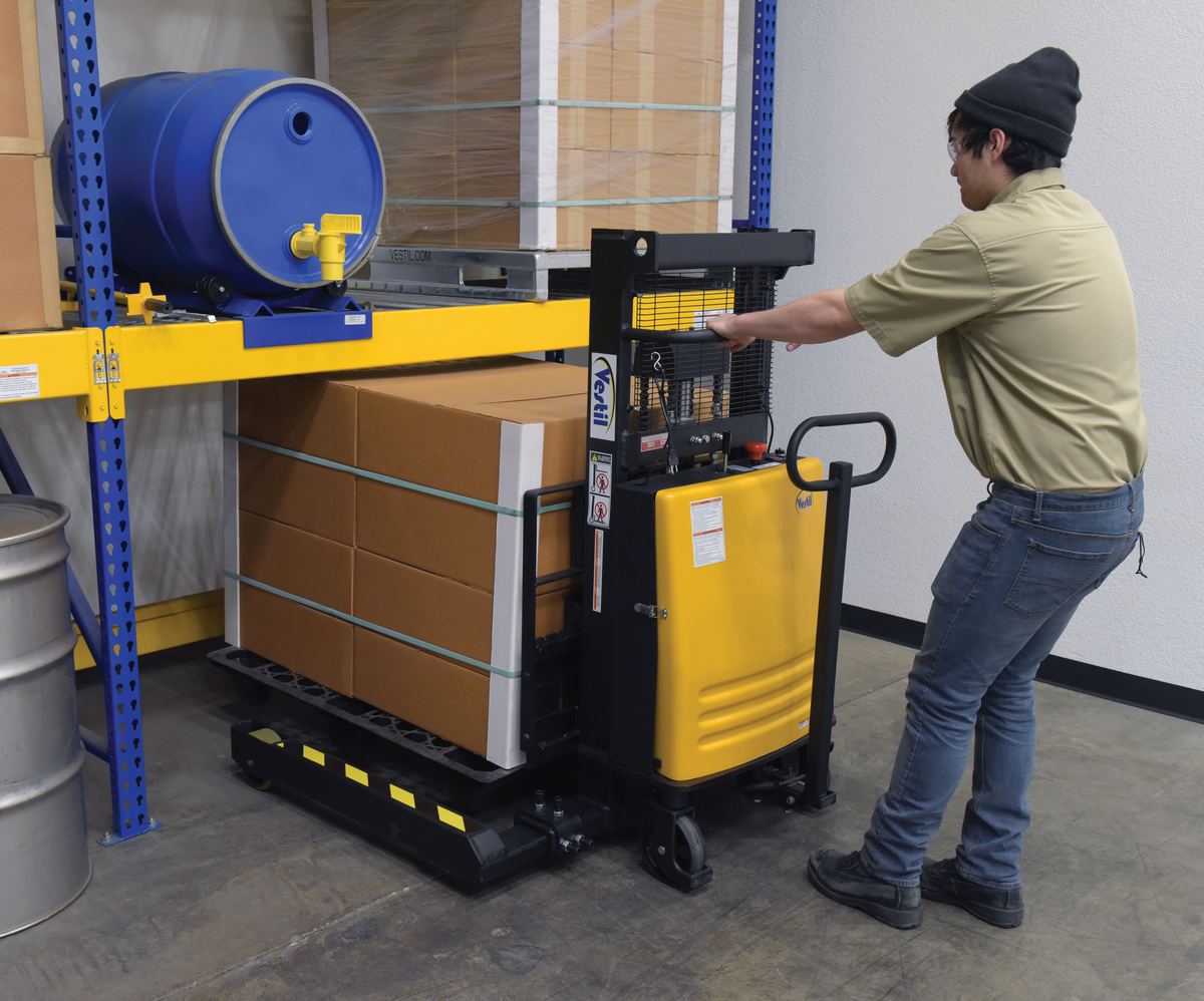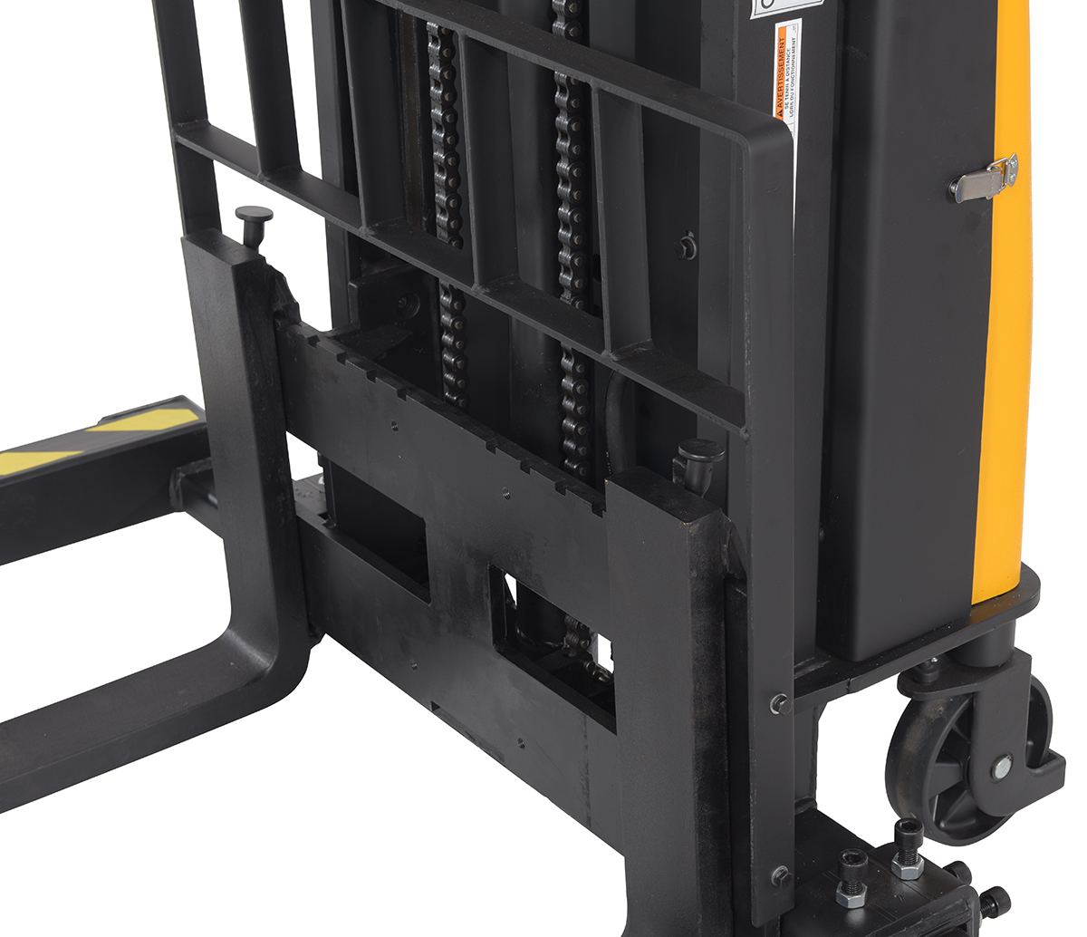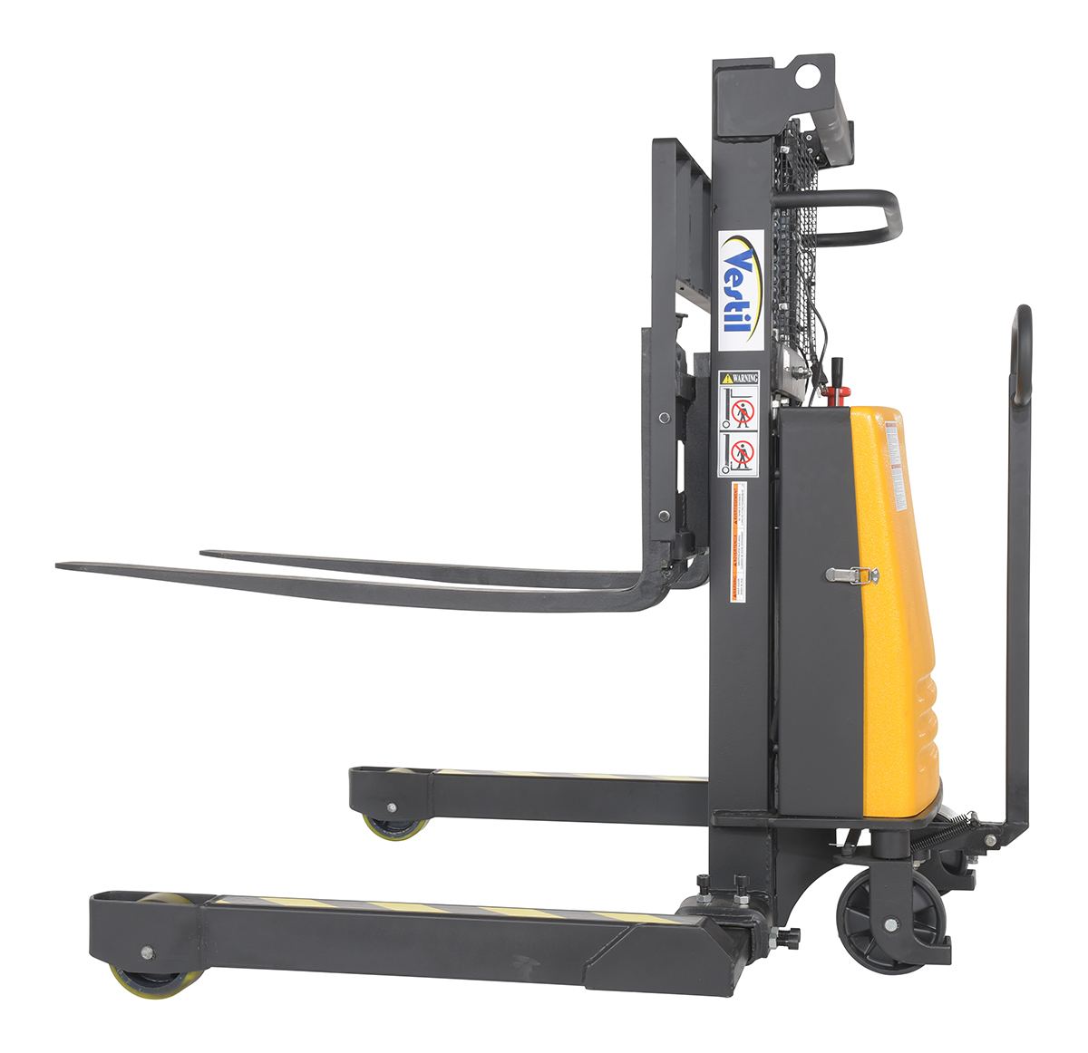 Steel Adjustable Stacker with Powered Lift 36 In. Raised Height 3,000 Lb. Capacity BlackAn adjustable stacker is one of the most efficient ways to move items, both large and small. With a 12V DC powered lift, items can easily be placed at a more ergonomically friendly height that diminishes bending and twisting . When moving the unit from area to area, the dual handles are well positioned to give the user control and stability. The legs of the unit are adjustable to allow the stacker to fit in a variety of settings. Stacker includes a baked in powder coat finish for added toughness.