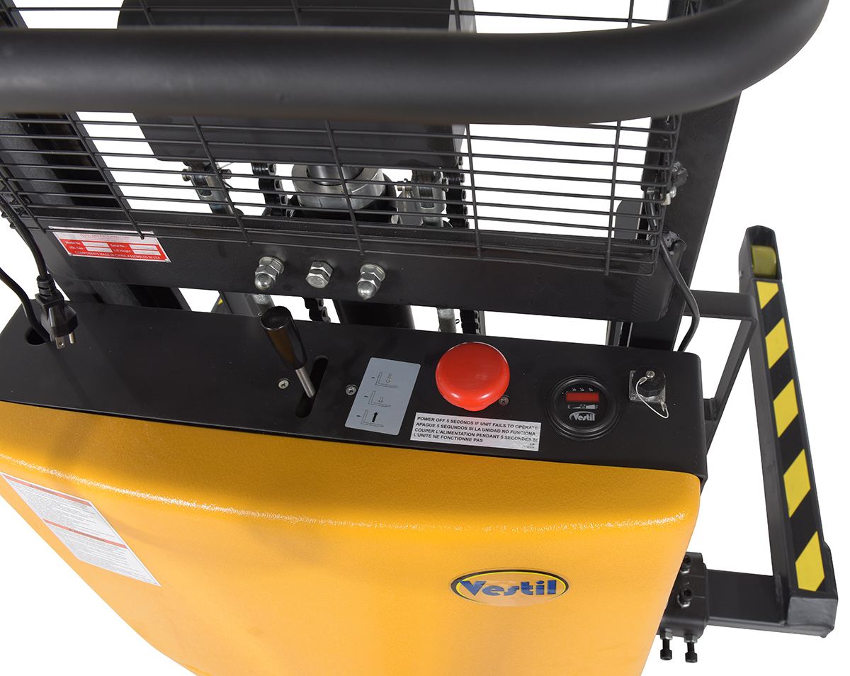 An adjustable stacker is one of the most efficient ways to move items, both large and small. With a 12V DC powered lift, items can easily be placed at a more ergonomically friendly height that diminishes bending and twisting . When moving the unit from area to area, the dual handles are well positioned to give the user control and stability. The legs of the unit are adjustable to allow the stacker to fit in a variety of settings. Stacker includes a baked in powder coat finish for added toughness.