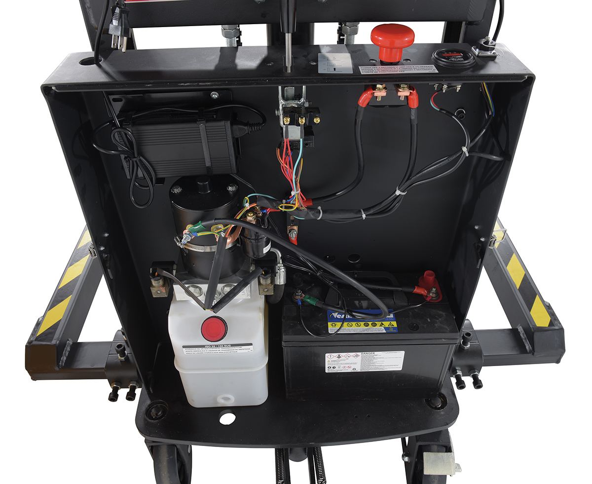 | Fork LxW: 42"x4" | Battery: (1) 12V Lead Acid | Poly Casters: (2) Swivel with Brake 7"x2", (2) Rigid 4"x3" |