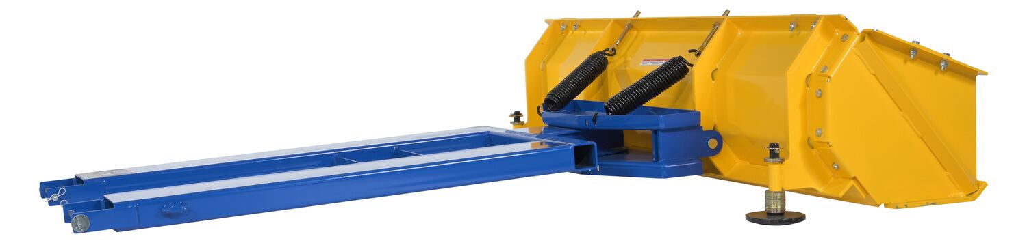 Steel Fork Mount Snow Pusher 72" Blade Blue/YellowWhen snow needs moved and removed, look no further than the fork truck snow pusher. The unique design attaches to fork truck forks, so no power supply is needed! With a manual pivot mechanism, blade rotation to both the right and left are simple. Steel construction with baked in powder coat finish for added toughness.