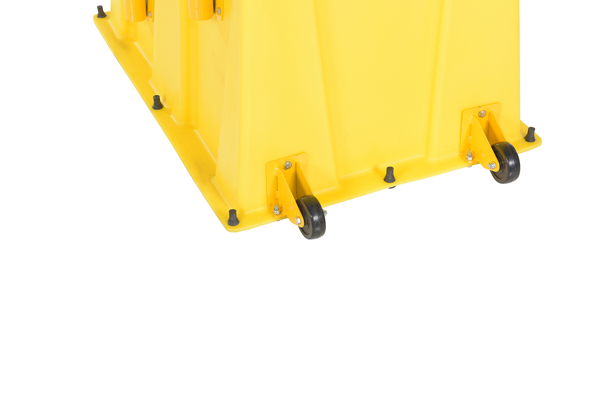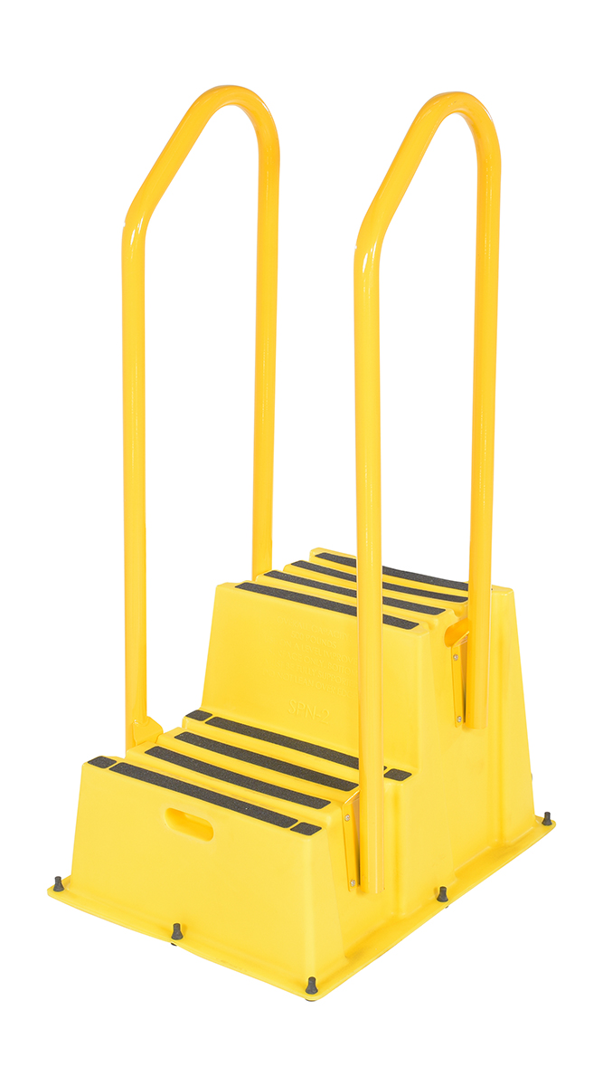 Polyethylene Nestable with Handrails Casters 2 Step 500 Lb. Capacity YellowA poly step stool is a great asset for on the go or in a permanent setting. A lightweight design with front and side cutout handles, allow the user to easily transfer the stool to a preferred spot. The taped step surfaces ensure safe footing while traversing up and down the steps. Includes bolt on handrail and casters. The hand rails height allows the unit to be pushed or pulled into the desired position, minimizing bending and twisting by the user. Steps can be nested to minimize footprint when not in use.