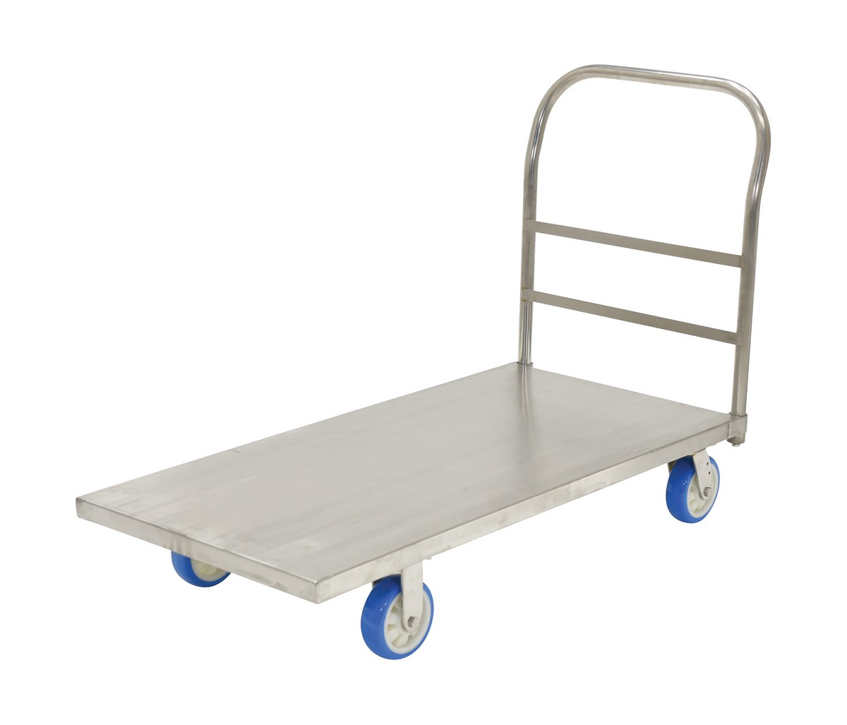High quality Stainless Steel platform trucks are highly suited for clean room environments, applications with food handling, and pharmaceutical industries. Completely formed from 201 grade stainless steel sheet and tube. Corrosion resistant, non-wearing, temperature resistant, completely hygienic stainless steel roller bearings. 100% Stainless steel platform trucks.