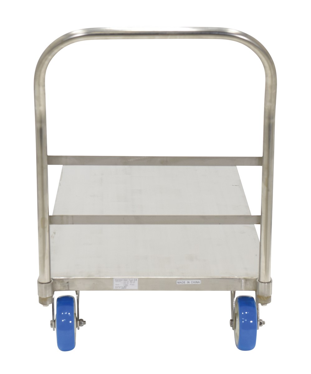 201 Stainless Steel Platform Truck 24 x 48 In. Deck 2,000 Lb. Static Capacity SilverHigh quality Stainless Steel platform trucks are highly suited for clean room environments, applications with food handling, and pharmaceutical industries. Completely formed from 201 grade stainless steel sheet and tube. Corrosion resistant, non-wearing, temperature resistant, completely hygienic stainless steel roller bearings. 100% Stainless steel platform trucks.