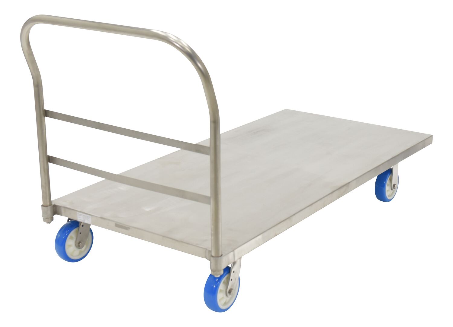 201 Stainless Steel Platform Truck 30 In. x 60 In. Deck 2,000 Lb. Static Capacity SilverHigh quality Stainless Steel platform trucks are highly suited for clean room environments, applications with food handling, and pharmaceutical industries. Completely formed from 201 grade stainless steel sheet and tube. Corrosion resistant, non-wearing, temperature resistant, completely hygienic stainless steel roller bearings. 100% Stainless steel platform trucks.