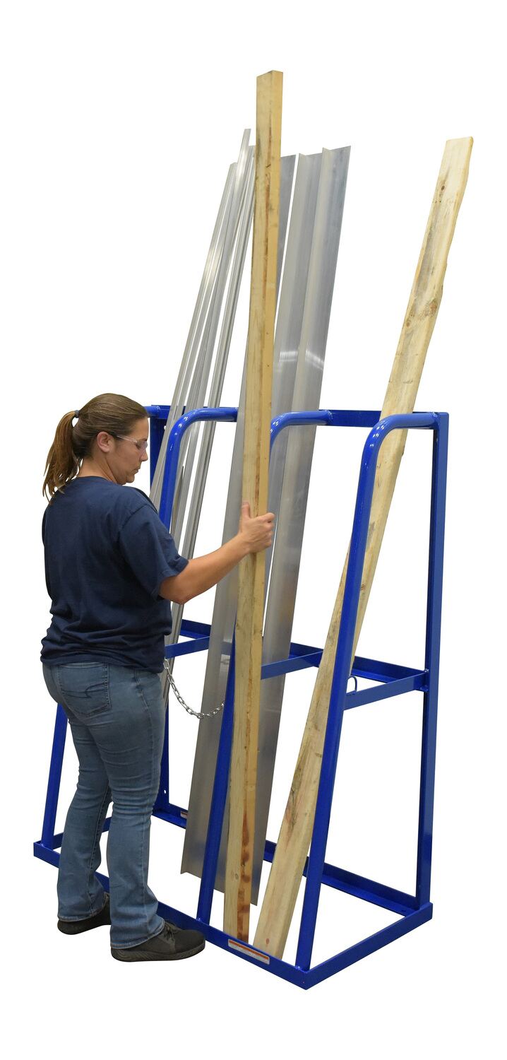 A vertical storage rack is perfect for distribution and manufacturing facilities. This unit is designed to organize and minimize floor space of long awkward pieces of material. For best use, it is recommended the unit be placed up against a wall for vertical or horizontal storage. Unit is powder-coated blue for baked in toughness and to minimize abrasions during use.
