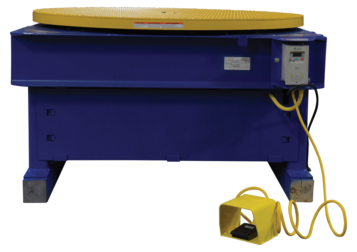 Steel Chain Driven AC Powered Carousel 4,000 Lb. Capacity Blue / YellowThe stand alone powered carousel easily rotates pallets, skids, and other large objects with this rugged powered carousel. This carousel includes a round tread plate turntable that is supported with inverted casters for use as bearings. Also included; turntable, base, power unit, and variable-speed control.