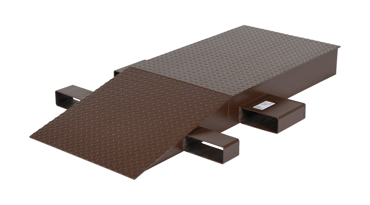 Steel Wheel Riser 60 In. x 24 In. x 6-1/4 In. 40,000 Lb. Capacity BrownWheel risers are designed to raise trailers to an appropriate crossover height for loaded fork trucks. Made of heavy-duty welded steel construction, these wheel risers are built to last! Each riser is equipped with fork pockets for easy transportation wherever a fork truck is available. Ramps may be stacked for convenient storage when not in use. Wheel risers are sold and priced as individual units.