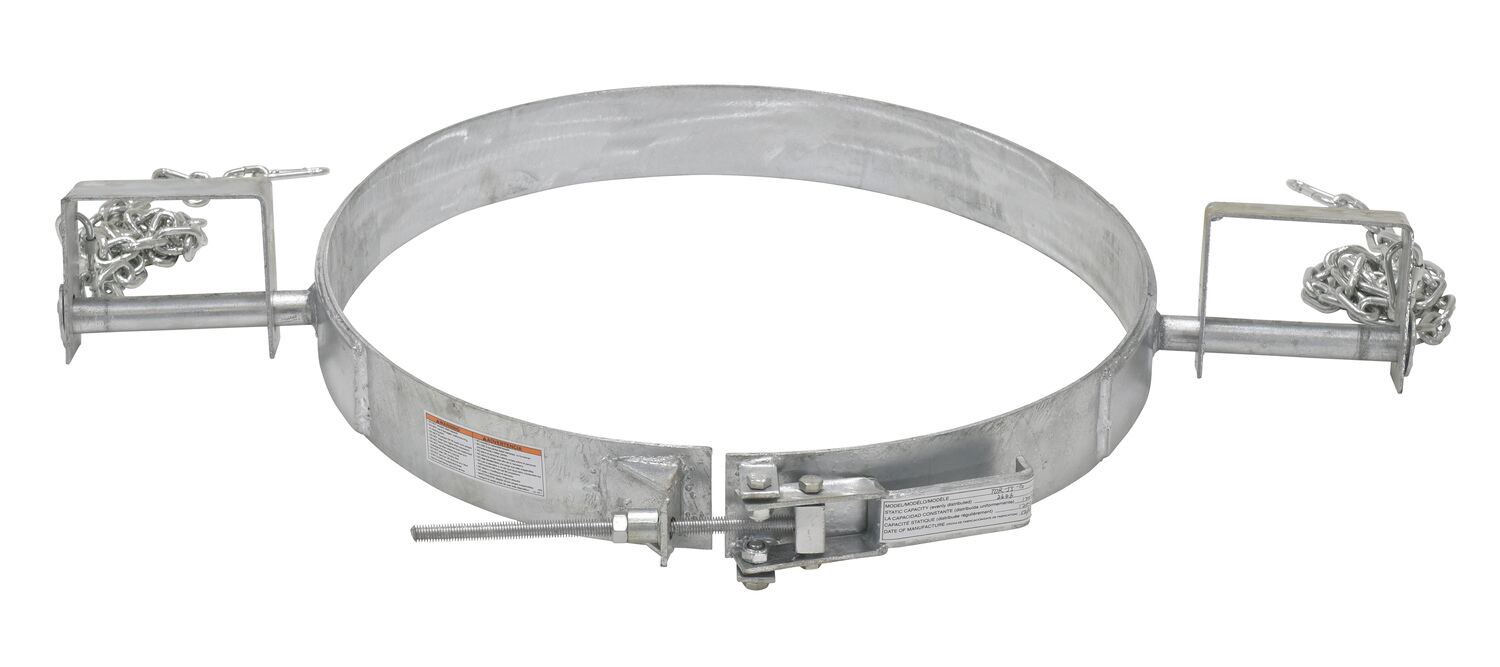 Carbon Galvanized Steel Tilting Drum Ring 55 Gallon Drum 1,200 Lb. Capacity GrayEasily transport steel drums with your fork truck and the tilting drum ring. Pivoting fork pockets allow you to manually rotate drum to dispense light materials. To use, slip the band over the belly of the steel drum and tighten the lock to secure the band around the belly of the drum. Welded steel construction.