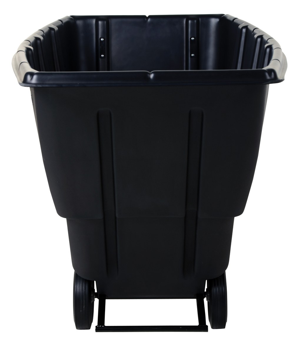 Plastic Medium Duty Tilt Truck 1 Cubic Yard 1250 Lb. Capacity BlackDurable plastic construction allows for collecting waste from multiple bins at a collective time. Great for warehouses, fairs, ball parks, schools, etc. Strong, one-piece molded polyethylene body with steel base tip support and a balanced design to allow for simple dumping by one person. Easily portable on 2 large rubber wheels and two swivel wheels. Not for use with fork trucks. Black color design.