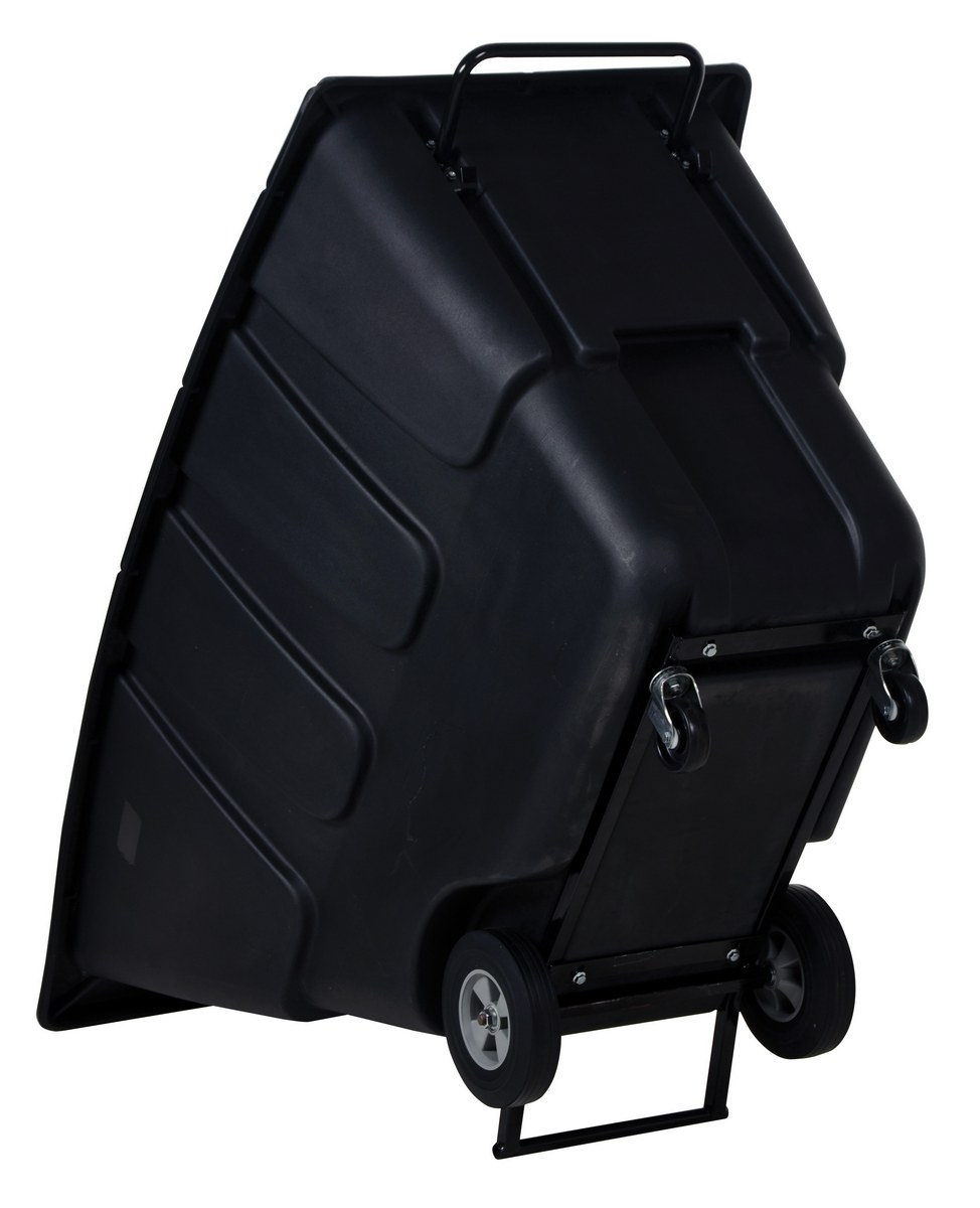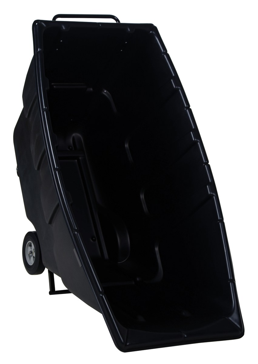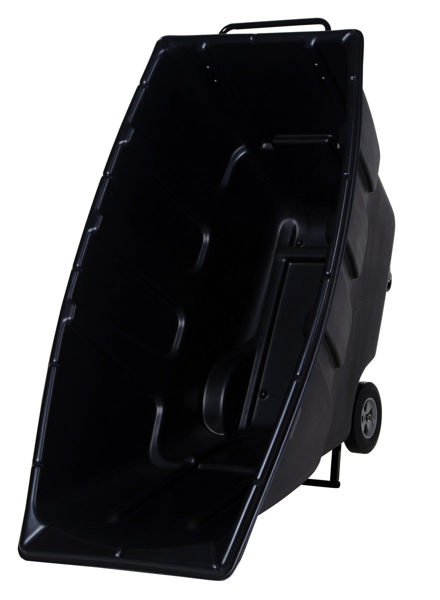 Durable plastic construction allows for collecting waste from multiple bins at a collective time. Great for warehouses, fairs, ball parks, schools, etc. Strong, one-piece molded polyethylene body with steel base tip support and a balanced design to allow for simple dumping by one person. Easily portable on 2 large rubber wheels and two swivel wheels. Not for use with fork trucks. Black color design.