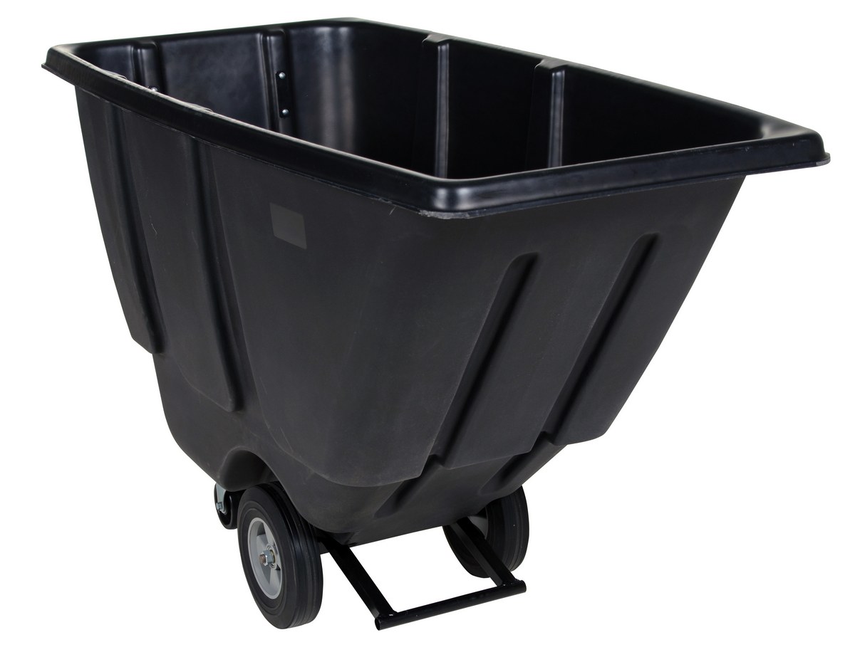 Plastic Light Duty Tilt Truck 1/2 Cubic Yard 450 Lb. Capacity BlackDurable plastic construction allows for collecting waste from multiple bins at a collective time. Great for warehouses, fairs, ball parks, schools, etc. Strong, one-piece molded polyethylene body with steel base tip support and a balanced design to allow for simple dumping by one person. Easily portable on 2 large rubber wheels and two swivel wheels. Not for use with fork trucks. Black color design.