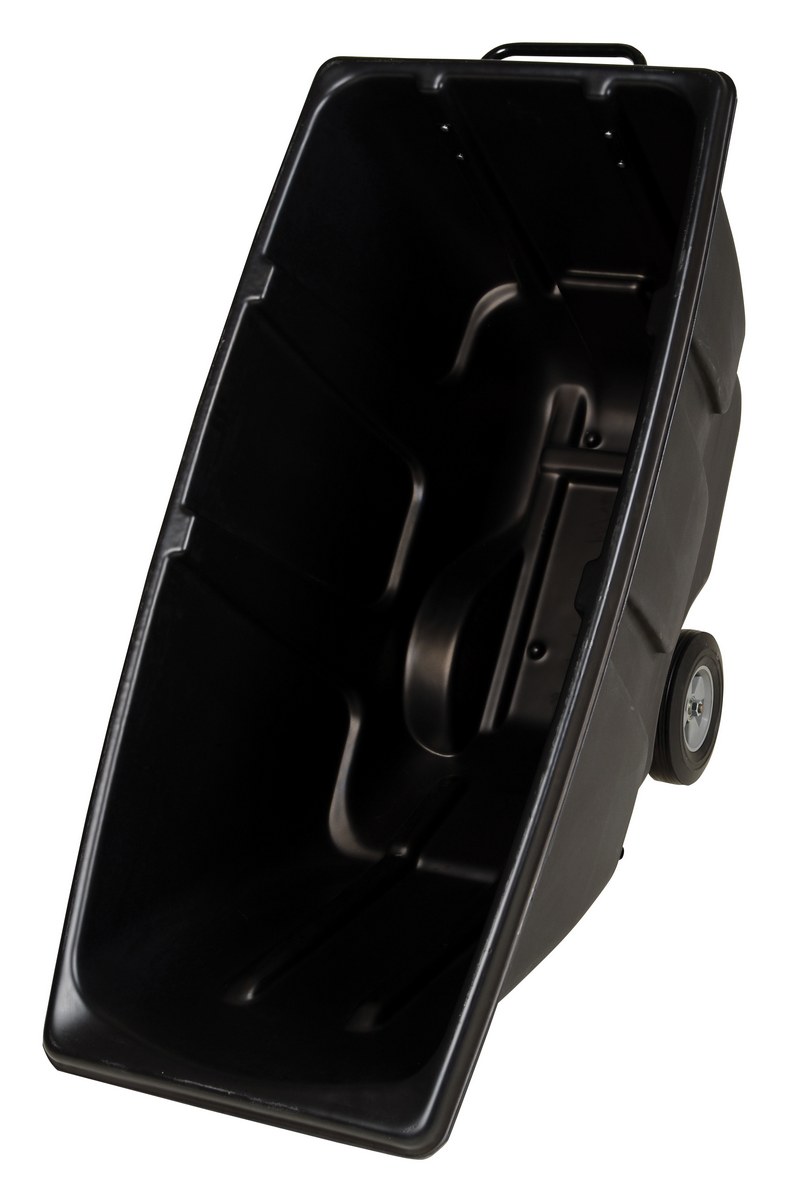 Durable plastic construction allows for collecting waste from multiple bins at a collective time. Great for warehouses, fairs, ball parks, schools, etc. Strong, one-piece molded polyethylene body with steel base tip support and a balanced design to allow for simple dumping by one person. Easily portable on 2 large rubber wheels and two swivel wheels. Not for use with fork trucks. Black color design.