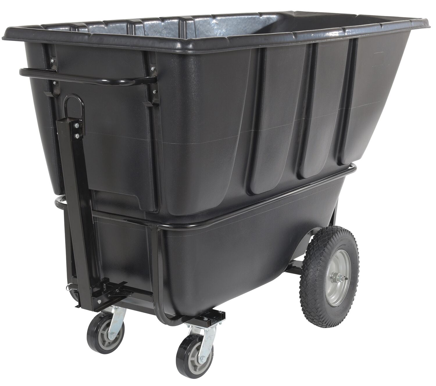 Plastic Heavy Duty Tow-Able Tilt Truck 1 Cubic Yard BlackWhen a large amount of material needs gathered, look no further than the tow-able tilt truck. The durable design functions well in an array of conditions and aids the user in collecting large amounts of remnants in a single pass. It's great for busy areas like warehouses, fairs, and schools. The one yard capacity unit is tapered in front to make it easier to pour materials into yet another larger container. A tow-able function enables the user to connect the truck to an additional pulling device for quick movement.
