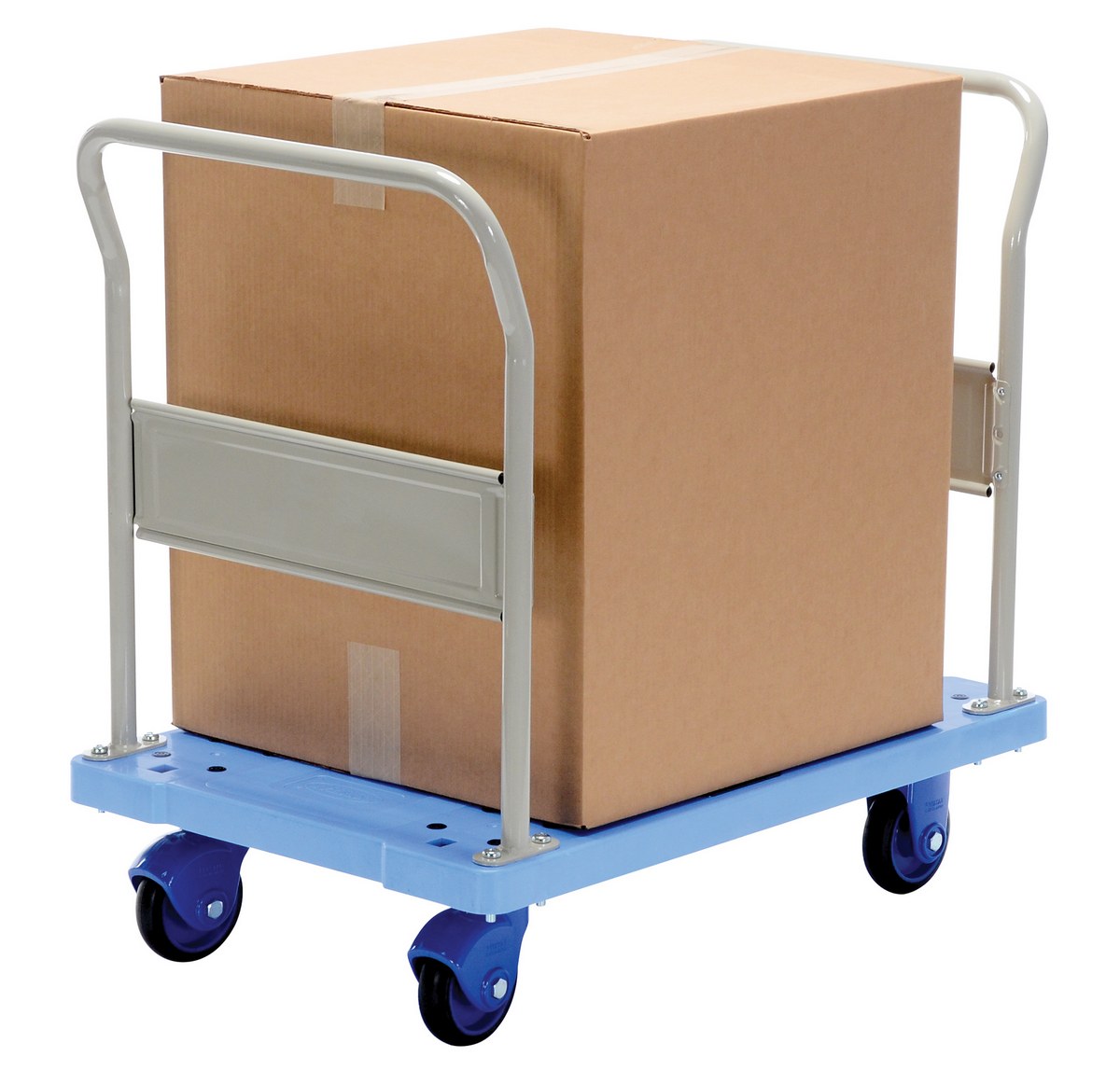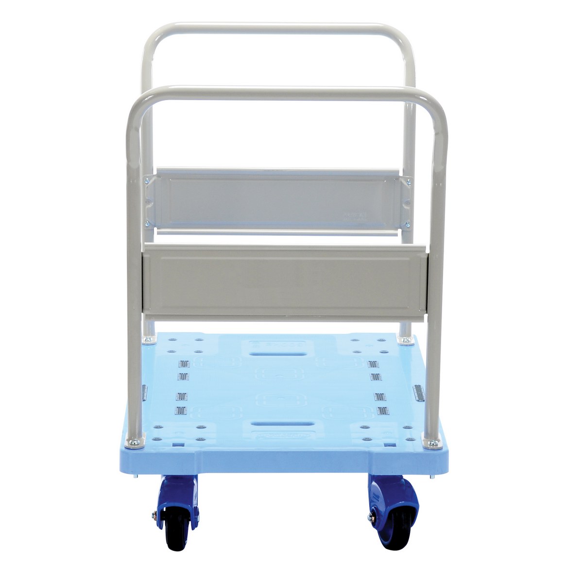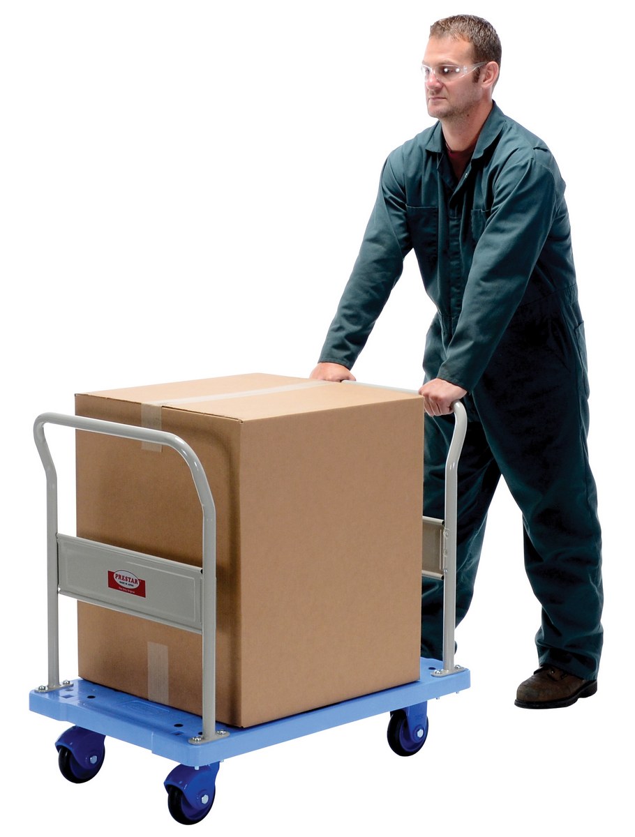 Plastic Truck Dual Handles 35-1/4 In. x 23-5/8 In. x 34-3/8 In. 660 Lb. Capacity BlueThe plastic platform cart is a great addition to the shipping and distributing facilities. The plastic platform creates a durable, yet lightweight construction that can be transferred simply from workstation to workstation. The unit rolls on casters for smooth transference over a variety of terrains, while the side nets enable the utmost security. The double handled design creates a more ergonomic posture of personnel during use.