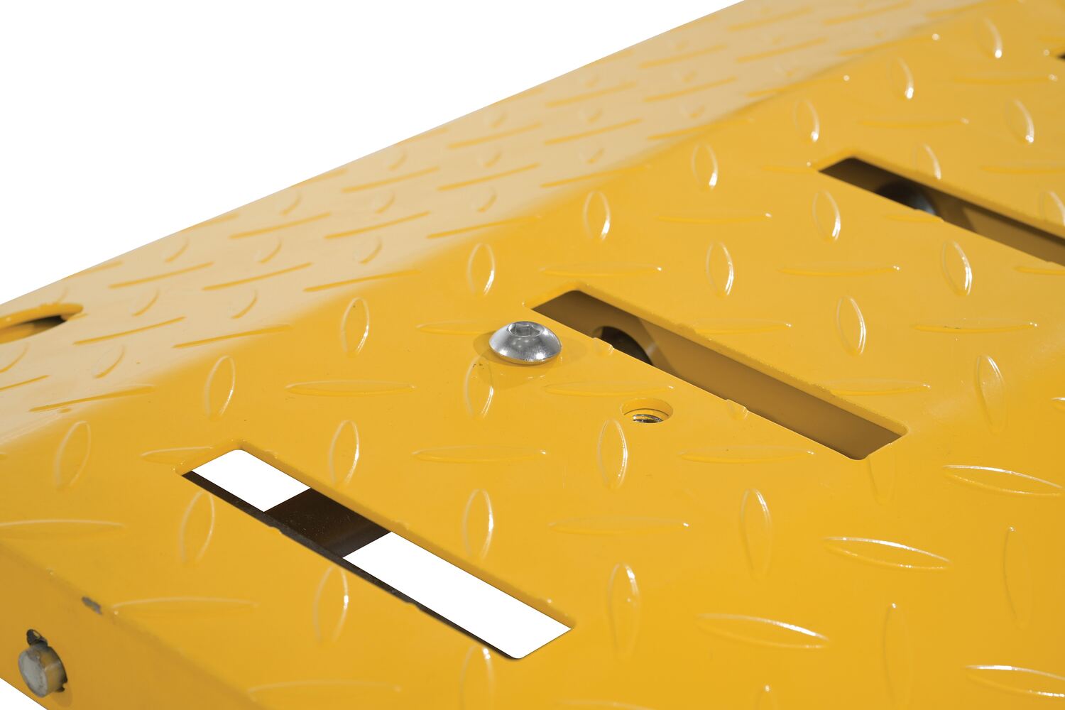 Steel Spiked Traffic Speed Bump 39" Wide 20 Ton Axle Load Capacity YellowA spiked speed bump is an easy way to control the movement of traffic, while deterring vehicles from entering and exiting in the same lane. With a retractable spiked design, the speed bump allows traffic to flow only in a single direction. When the vehicle enters in the correct direction the spikes will submerge into the construction of the bump allowing the vehicle to pass unobstructed. If the vehicle were to exit using the same lane, the spikes will not retract but continue to stand tall.