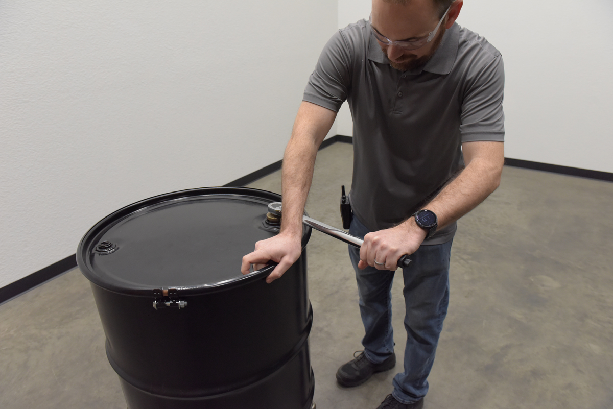 Reversible ratchet-head style torque wrench with easy to set torque setting - wrench "clicks" when setting is reached. Knurled handle grip surface for extra grip during use. Use with bung sockets to comply with UNC standards.
