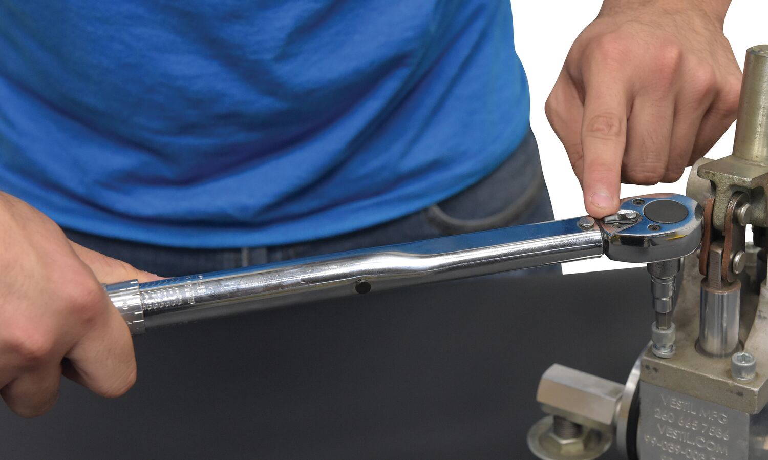 Reversible ratchet-head style torque wrench with easy to set torque setting - wrench "clicks" when setting is reached. Knurled handle grip surface for extra grip during use. Use with bung sockets to comply with UNC standards.