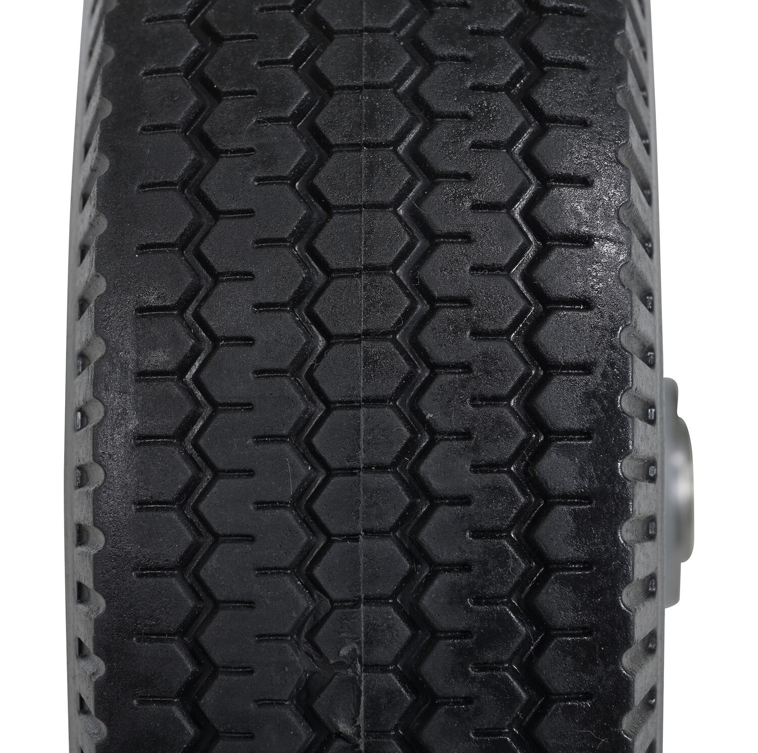 Polyurethane Solid Foam Wheel 10 In. Diameter 300 Lb. Capacity BlackUrethane foam wheels provide a sound base for traversing both even and uneven surfaces. The foam construction will always be ready for the job, unlike other less dependable pneumatic models that have the potential of being flat, just when there is work to be done. With a simple connection to a cart or hand truck, upgrade with a foam filled wheel today!