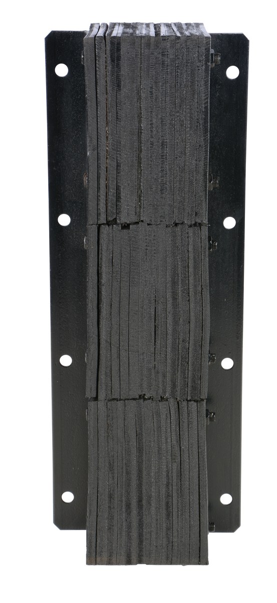 The laminated Dock Bumper provides durable, economical protection for loading docks and trailers. Unit is constructed of fabric reinforced rubber from recycled truck tires. The pads are laminated between painted structural angles and held together with steel tie rods. Installation is quick and easy by bolting or welding unit to the dock. Width is bolt hole center to bolt hole center. The installation hardware is available separately.