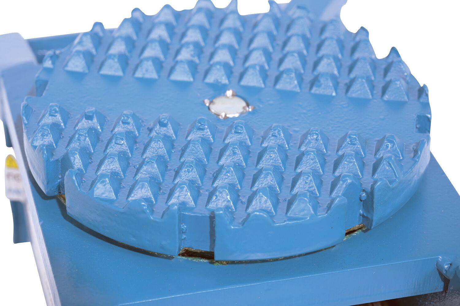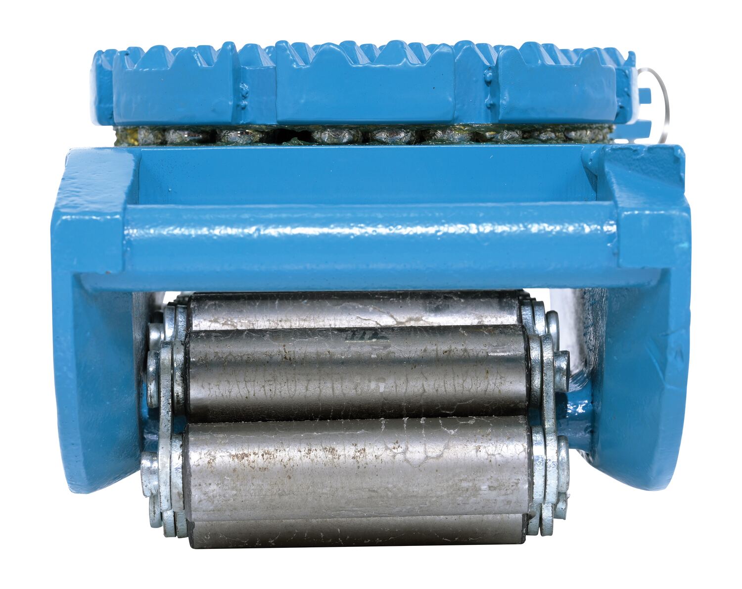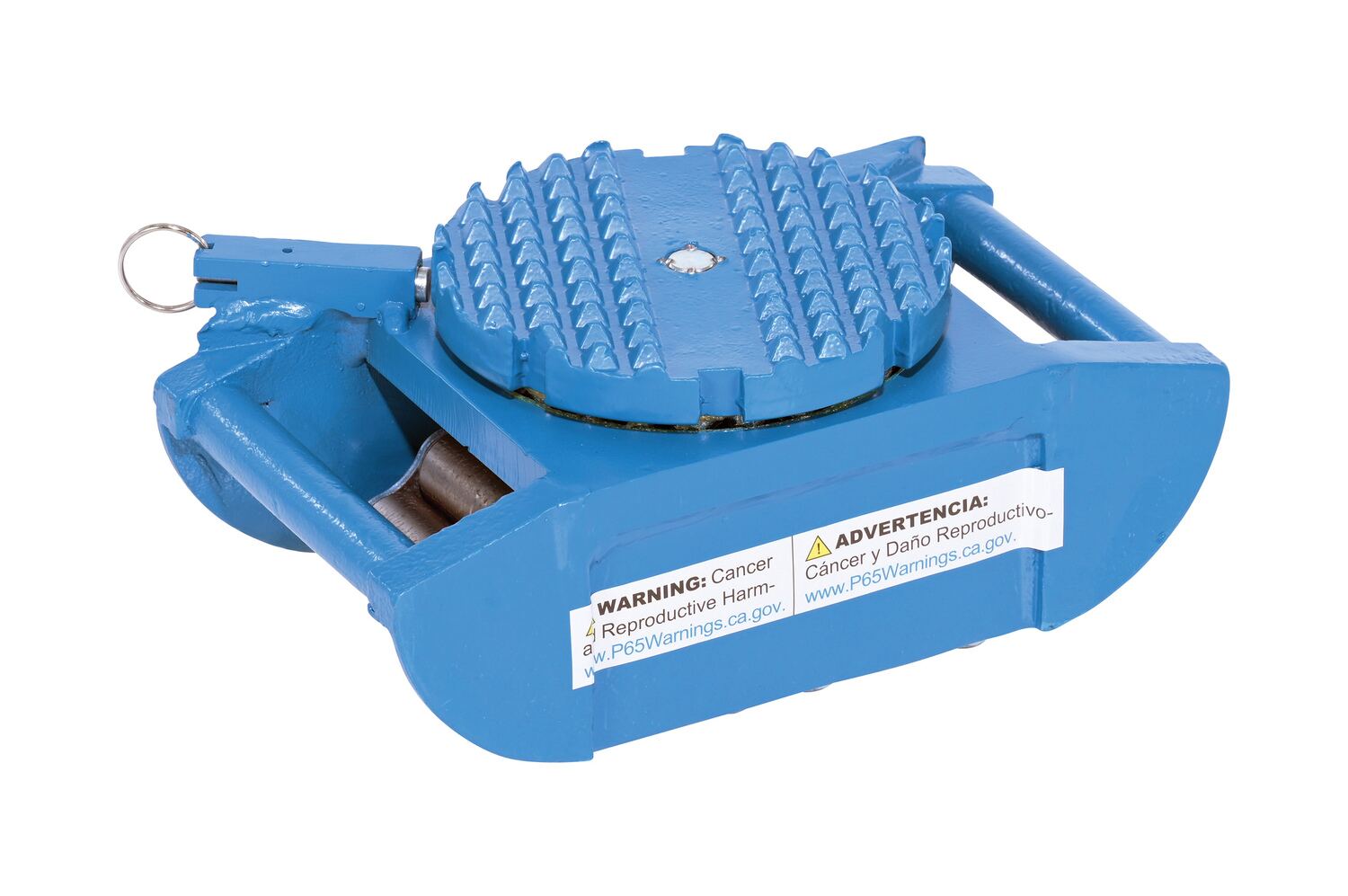 Steel Machine Roller 22,000 Lb. Capacity BlueMade of high-strength annealed ductile iron, this steel machine roller has swivel tops that rotate three hundred sixty degrees (360 degrees) on chrome steel ball bearings to allow for easier turning. The rollers form a "tank track" to revolve around a center load bearing plate in the frame to provide maximum maneuverability. The weight of the load is transferred directly from the load bearing plate to the rollers, eliminating axle friction and requiring less power to start and move. This unit is virtually maintenance free.