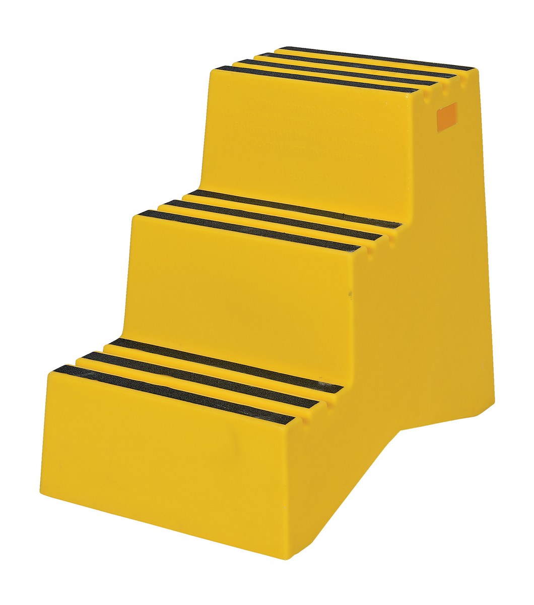 Polyethylene 3-Step Step Stool 500 Lb. Capacity YellowWhen items are out of reach, do not strain, simply step up with this Polyethylene step stool. The three (3) step unit has rear opening access storage compartments. This stool has rubber feet and a non-skid tape surface. Hand holes are standard for easy one person transportation.