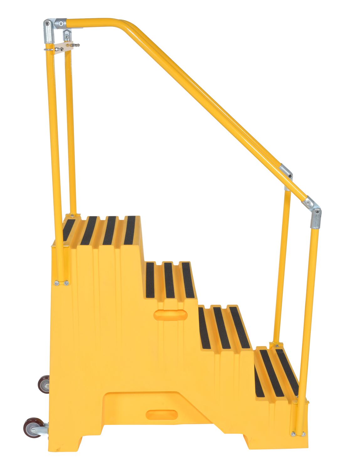 Polyethylene 4-Step Step Stool 500 Lb. Capacity YellowWhen items are out of reach, do not strain, simply step up with this Polyethylene step stool. The four (4) step unit has rear opening access storage compartments. This stool has rubber feet and a non-skid tape surface. Hand holes are standard for easy one person transportation.
