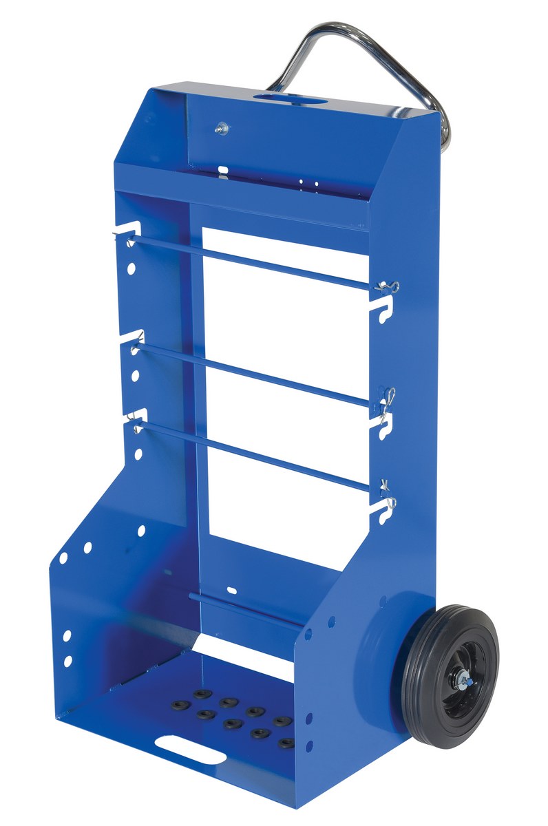 Portable Steel Cord Reel Caddy 300 Lb. Capacity BlueThis portable wire reel caddy is designed to easily move wire reels where you need them the most. Dispense wire in vertical or horizontal position. Includes four (4) spool bars for handling various size reels. Bottom of caddy includes wire guide holes for quick access. Bolt-on push handle and casters for smooth ergonomic transporting.