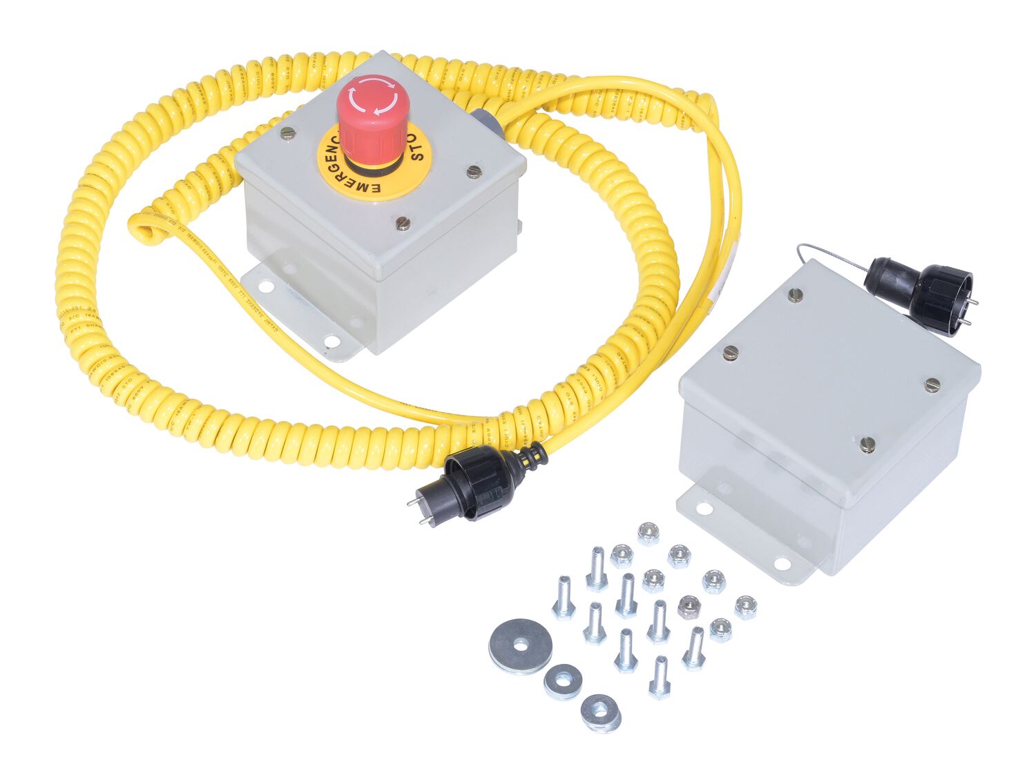 Emergency Stop Button Kit For Work Platform ModelsThe emergency stop button kit is great for the distribution and shipping facilities. The unit allows the operator to shut off the fork truck power from the work platform. The unit is designed to work on gas powered fork trucks, and can be adapted to work on electric or diesel fork trucks. When installed, simply push in on the emergency stop button to immediately stop the unit.