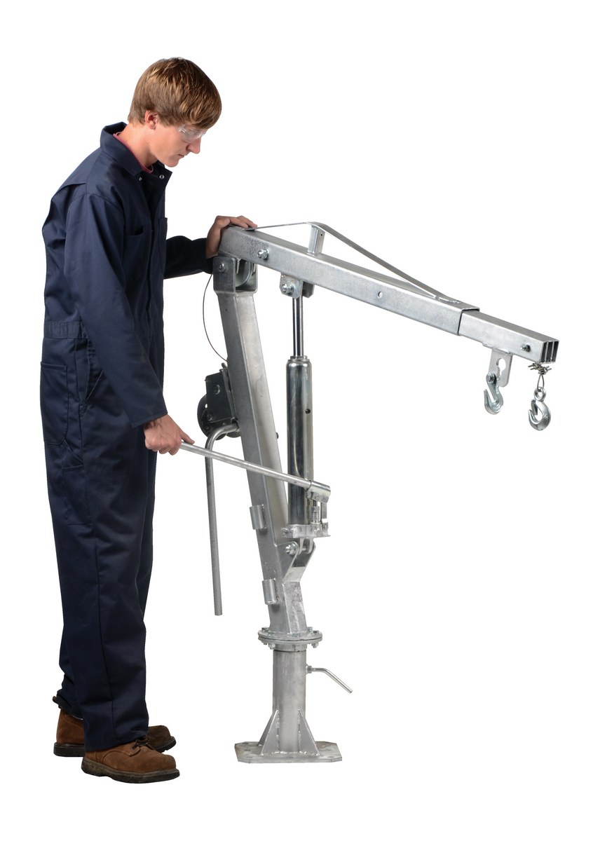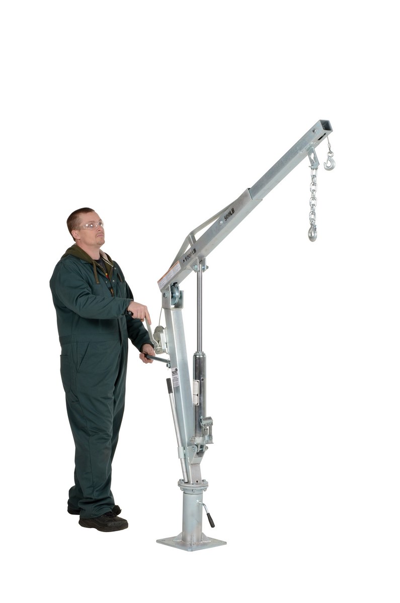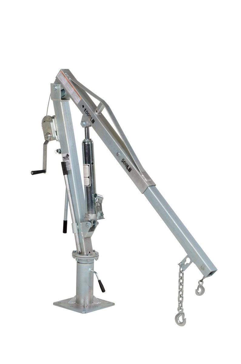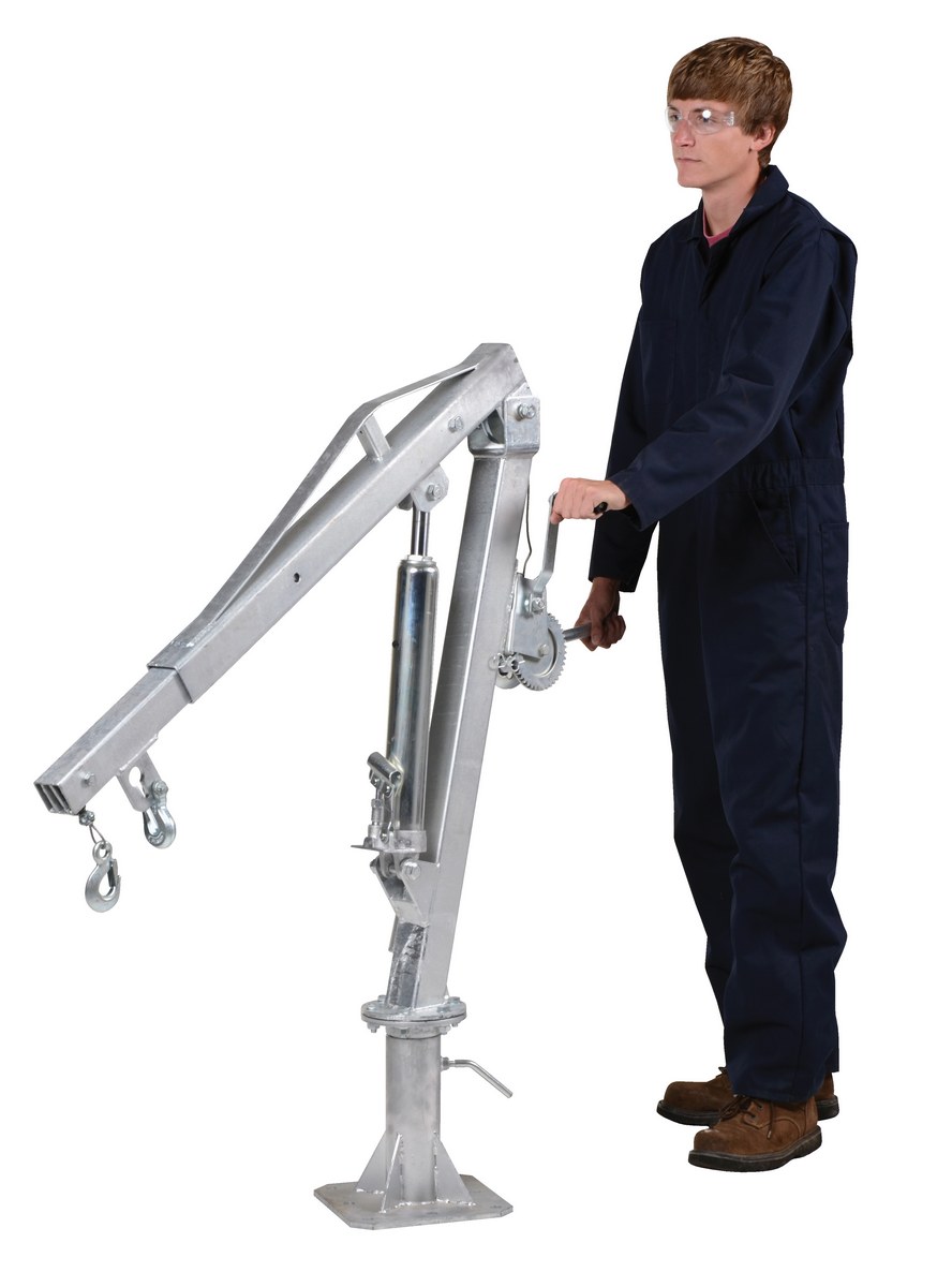 Galvanized Steel Winch Truck Jib Crane 500 Lb. Extended Capacity GrayThis Galvanized winch operated truck Jib crane lifts items from ground to truck bed height, then rotate into cargo area. Includes telescopic boom design with manual hydraulic hand pump to pivot boom up and down. Manual cable winch to lift and lower loads. Unit comes with one grab hook, one chain slot lock, and one sling hook with latch. Unit is designed for vertical lifting only. Do not use unit for lifting personnel or overhead lifting.
