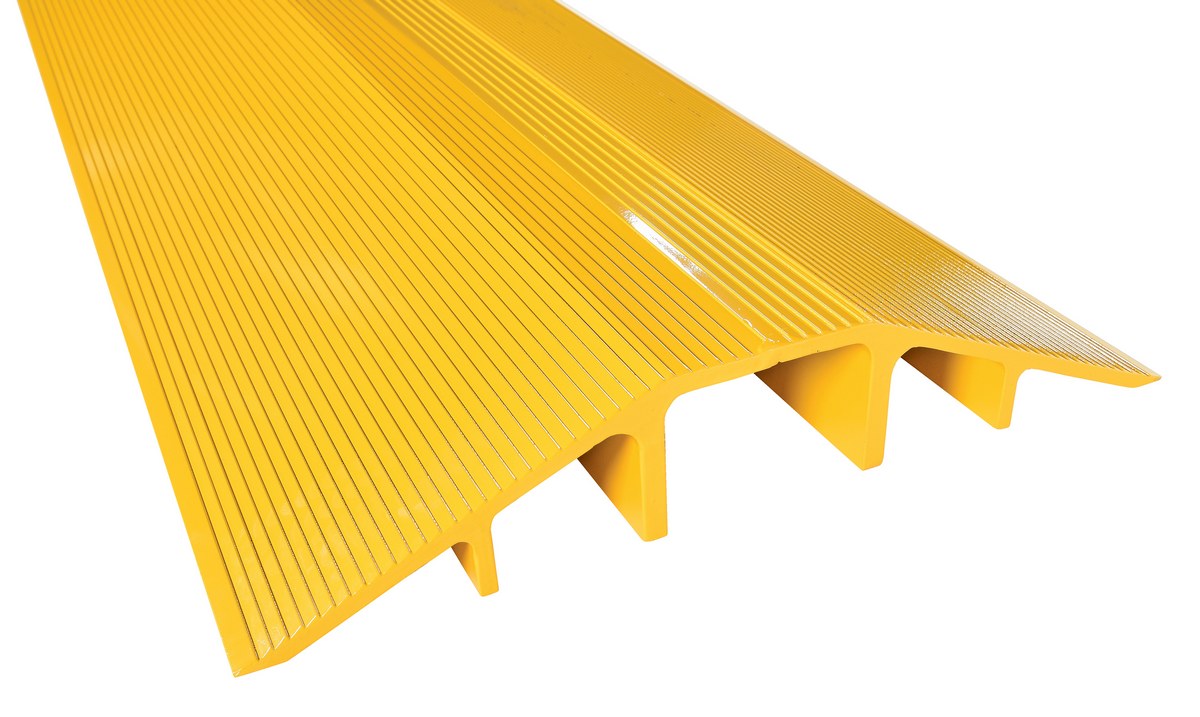 Aluminum Extruded Hose/Cable Crossover 60 In. Length YellowThe Extruded Aluminum hose and cable Crossover is perfect for a multitude of industries, from office area to warehouses. A crossover is designed to protect air lines, electrical cords and computer cables from damage by fork trucks, carts, and personnel. This crossover is lightweight for easy portability.
